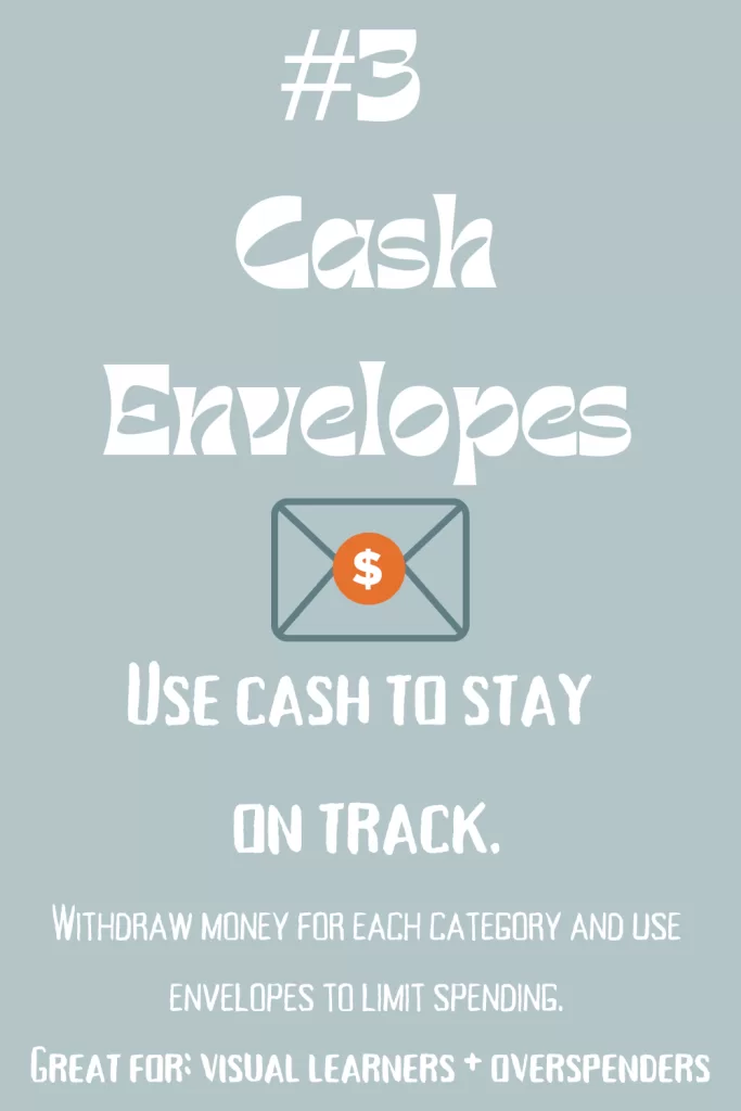 You withdraw cash and put it into envelopes for each category (like groceries, gas, etc.). When the envelope is empty, you’re done spending in that category for the month.